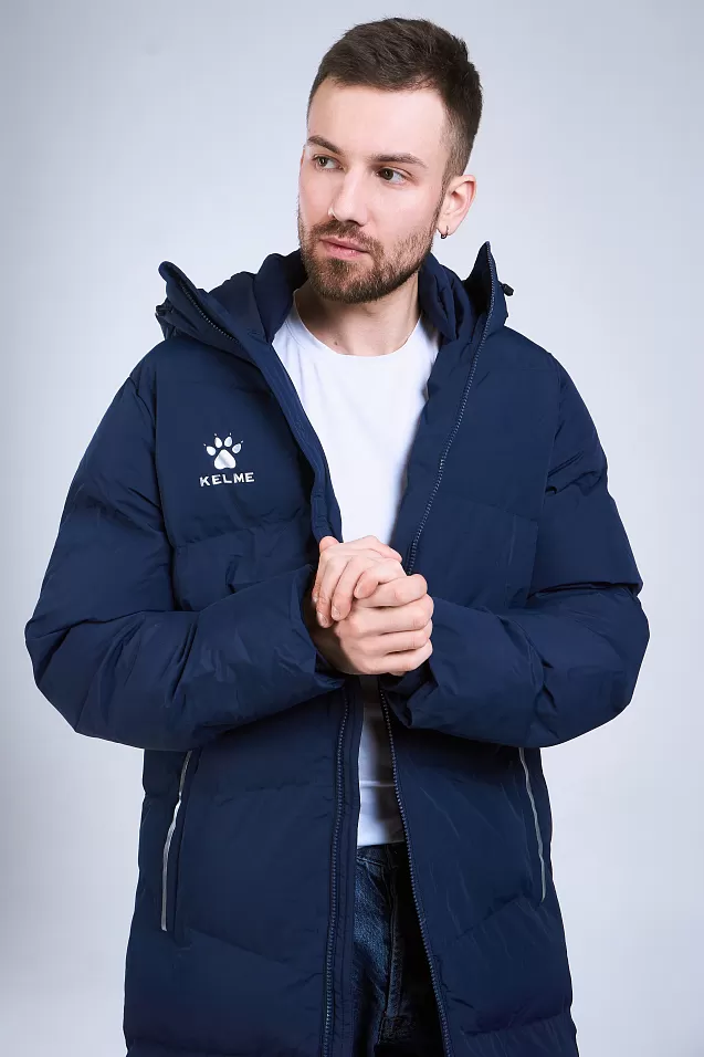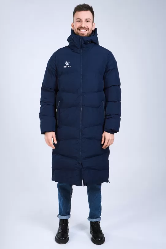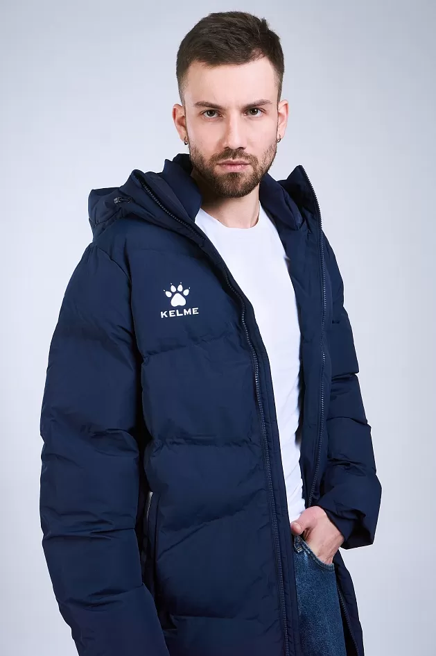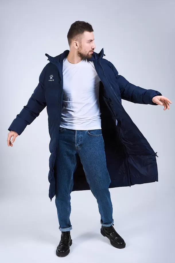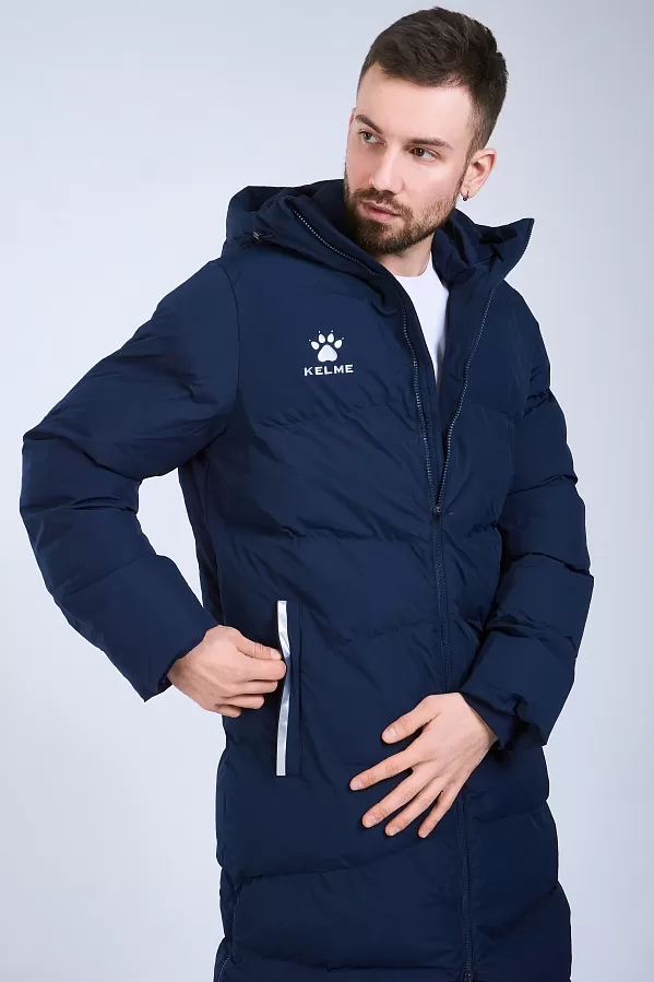 Длинная теплая куртка с капюшоном, с двойной молнией, из 100%-го, легкого и прочного полиэстера. Материал не промокает и отлично защищает от ветра, способствует отведению излишнего тепла и влаги. Манжеты рукавов на резинке способствуют сохранению тепла. Капюшон с кулиской с зажимами для дополнительного комфорта. В куртке два боковых кармана на молнии и один внутренний на липучке. По бокам, в нижней части куртки, добавлены две молнии, для регулировки посадки. Модель отличает лаконичный дизайн: куртка однотонная с контрастными логотипами и полосами по краям боковых карманов.