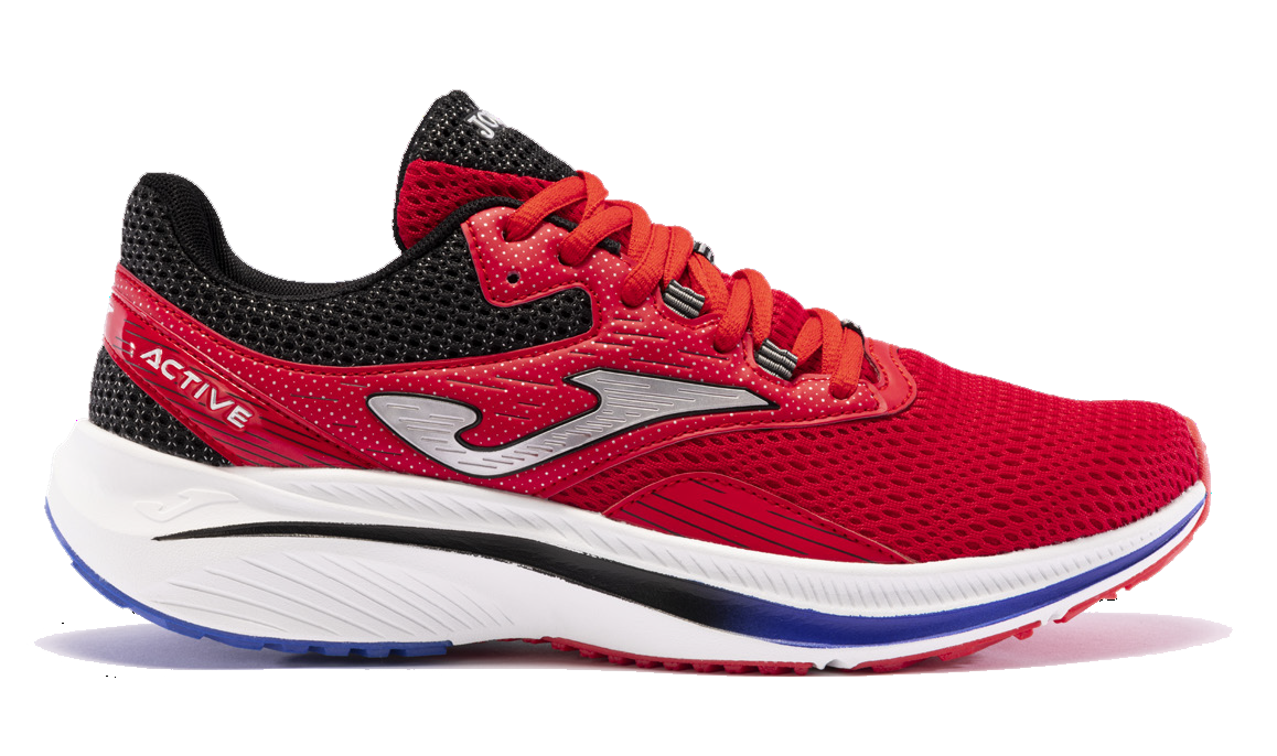 Joma ACTIVE кроссовки для тренировок начинающих бегунов с нейтральной пронацией. Верхняя часть выполнена из легкой и дышащей текстильной ткани. Отверстия для доступа воздуха (система VTS) обеспечивают сухость и комфортные условия для ног спортсмена. Вставки из синтетического материала в местах отверстий для шнурков и по бокам обеспечивают прочность, устойчивость и защиту. Промежуточная подошва изготовлена из цельного куска филона (Phylon), который отвечает за амортизацию. Подошва изготовлена из износостойкой резины, устойчивой к истиранию и гибкой благодаря системе линий FLEXO.
