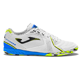 Joma Dribling, футзалки, верх которых изготовлен из прочного и гибкого синтетического материала Fibertec (искусственная кожа). Боковые части выполнены из сетчатого текстиля, отвечающего за доступ воздуха. Мягкий текстильный материал применен во внутренней части верха. В области носка в материале также имеются вентиляционные отверстия (система VTS), благодаря которым стопа игрока все время матча или тренировки остается сухой. Усиленная пятка и носок защищают от повреждений. Дополнительный защитный элемент в носочной области помогает наносить сильные удары по мячу. Подошва DRIBLING выполнена из износостойкой резины (технология DURABILITY) , обеспечивающей отличный контракт с игровой поверхностью. Точка разворота ROTATION помогает легко и без риска травмы изменять направление движения на паркете. Линии FLEXO делают футзалки гибкими и способствуют естественному движению стопы по время бега. Технология PERFECT FIT, используемая в зоне шнуровки, обеспечивает оптимальную посадку кроссовок.
