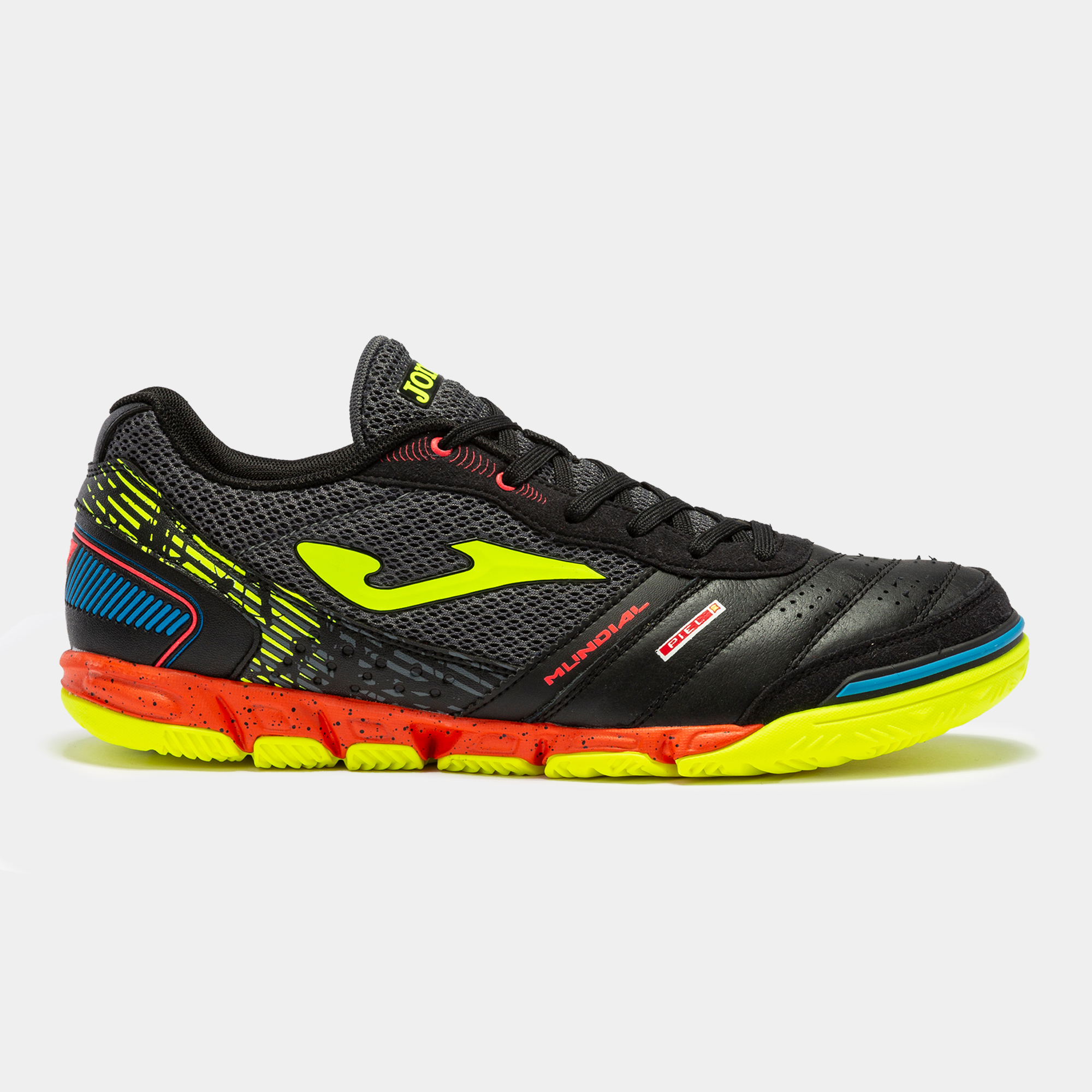 Joma Mundial – футзалки, отвечающие самым высоким требованиям профессиональных игроков. Они завоевали популярность у «профи», в том числе, за легкость и удобную и плотную посадку ступни. Верх этих футзалок классического кроя выполнен из дышащей микрофибры. Передняя часть – из натуральной кожи, гибкого и дышащего материала, отвечающего за идеальный контроль мяча. Для повышения воздухопроницаемости добавлены отверстия (технология VTS). Носок усилен накладкой из искусственной замши – для силы и точности удара. Пятка защищена от ударов и обладает необходимой жесткостью для фиксации стопы. За амортизацию в Mundial отвечает стелька из термоформованного EVA и межподошва из высококачественного и прочного филона. Подошва, которую характеризует отличное сцепление с поверхностью, изготовлена из износостойкой резины с применением технологии Durability.